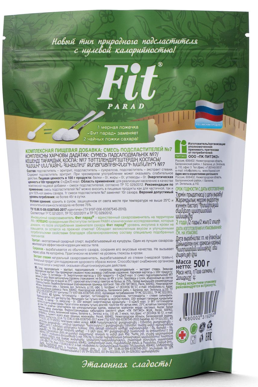 FitParad/ФитПарад Сахарозаменитель №7 500г, дойпак