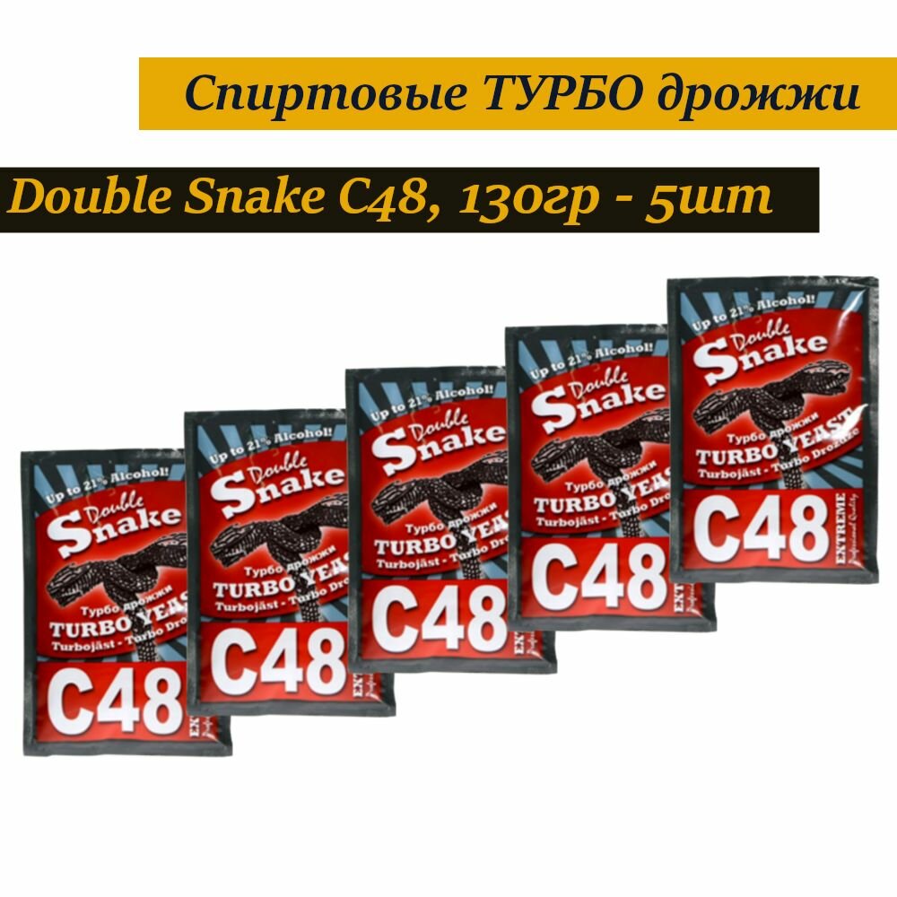 Турбо дрожжи Double Snake C48, 5х130 гр (Дабл Снейк С48 спиртовые, 5 штук в комплекте)