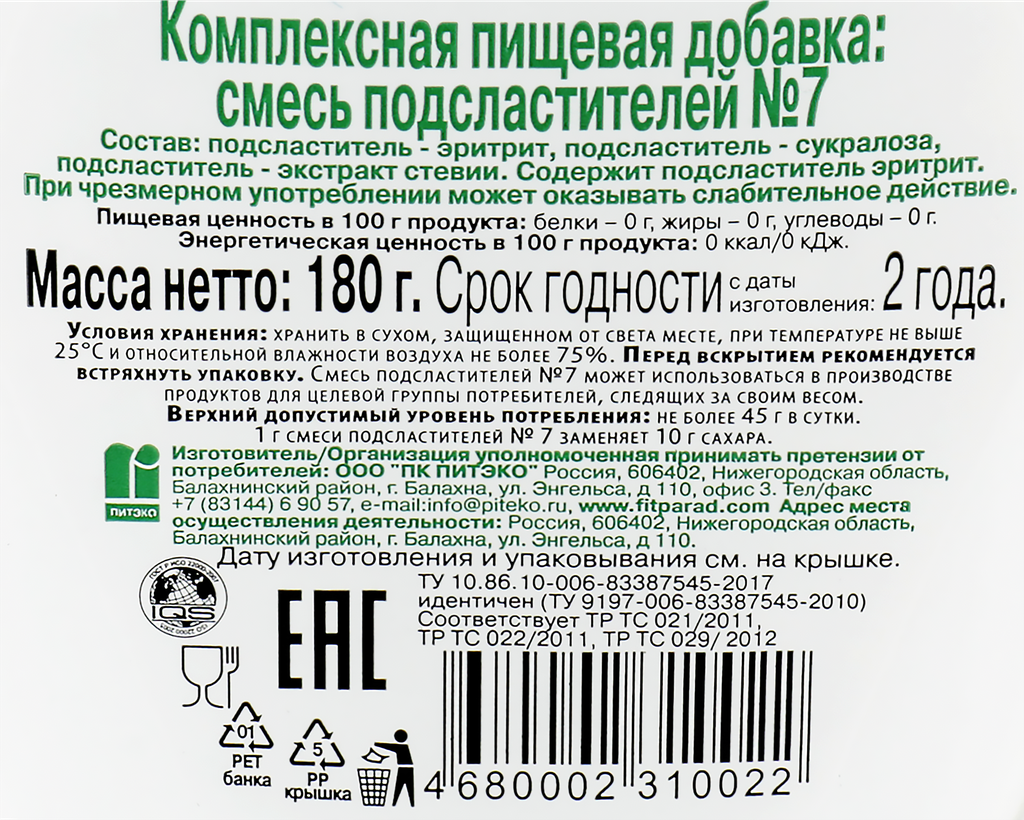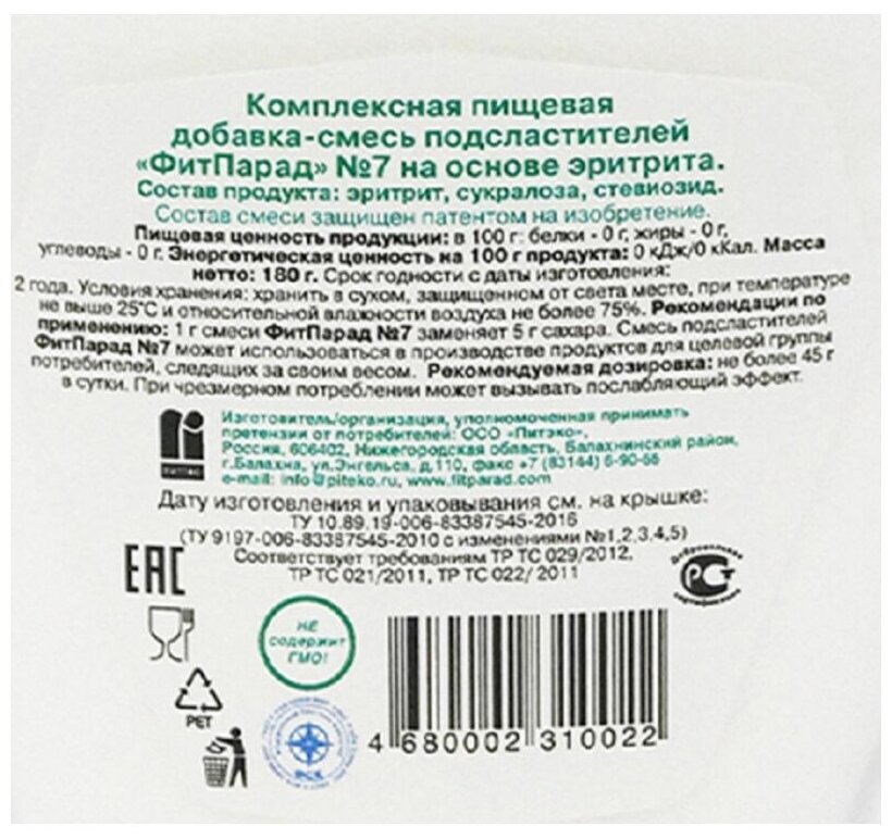 Ниже Вы можете прочитать отзывы на Сахарозаменитель Fit Parad № 7 180 г, ознакомится с подробными характеристиками, посмотреть интересные обзоры и фотографии на Сахарозаменитель Fit Parad № 7 180 г.