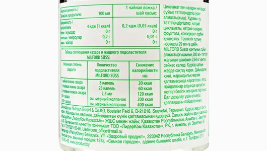 Подсластитель MILFORD Suss на основе цикламата и сахарина, жидкий, 200мл интересное: