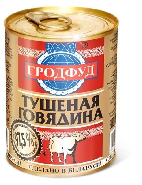 Говядина тушеная ТМ "Гродфуд" Беларусь (97,5% мяса), 338 гр.