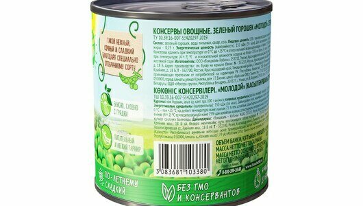 | Состав | зеленый горошек, вода питьевая, сахар, соль |