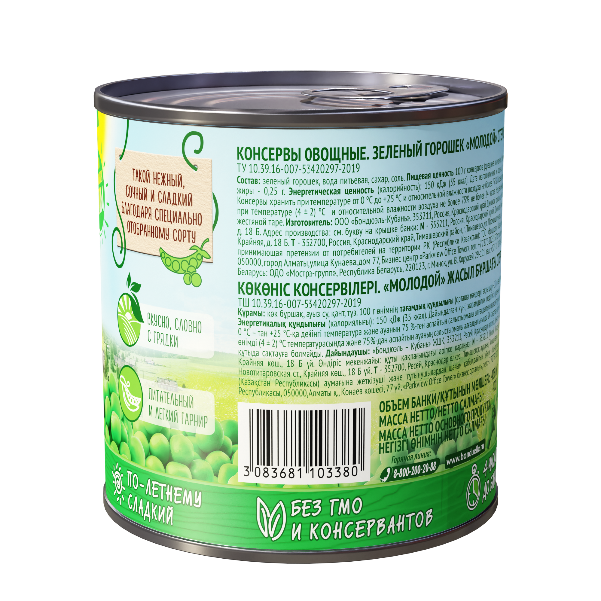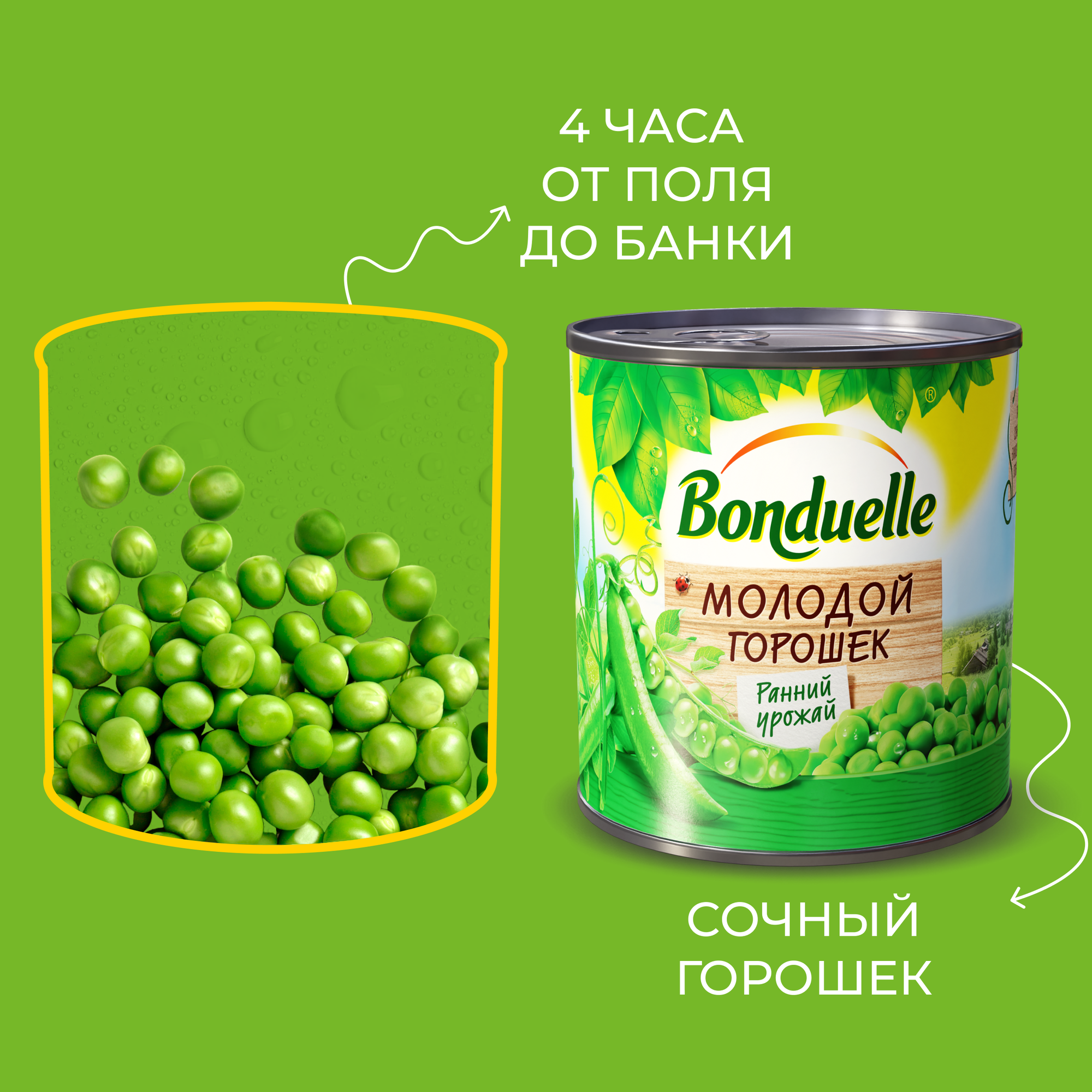 Горошек Bonduelle зеленый молодой, жестяная банка