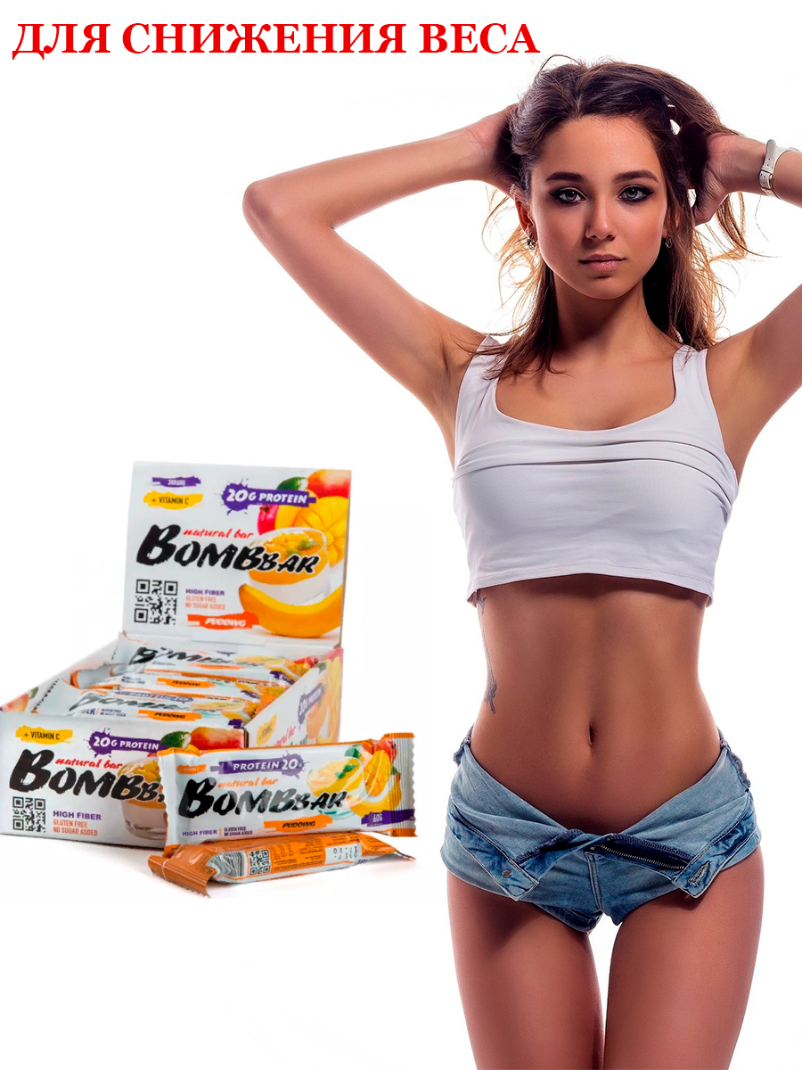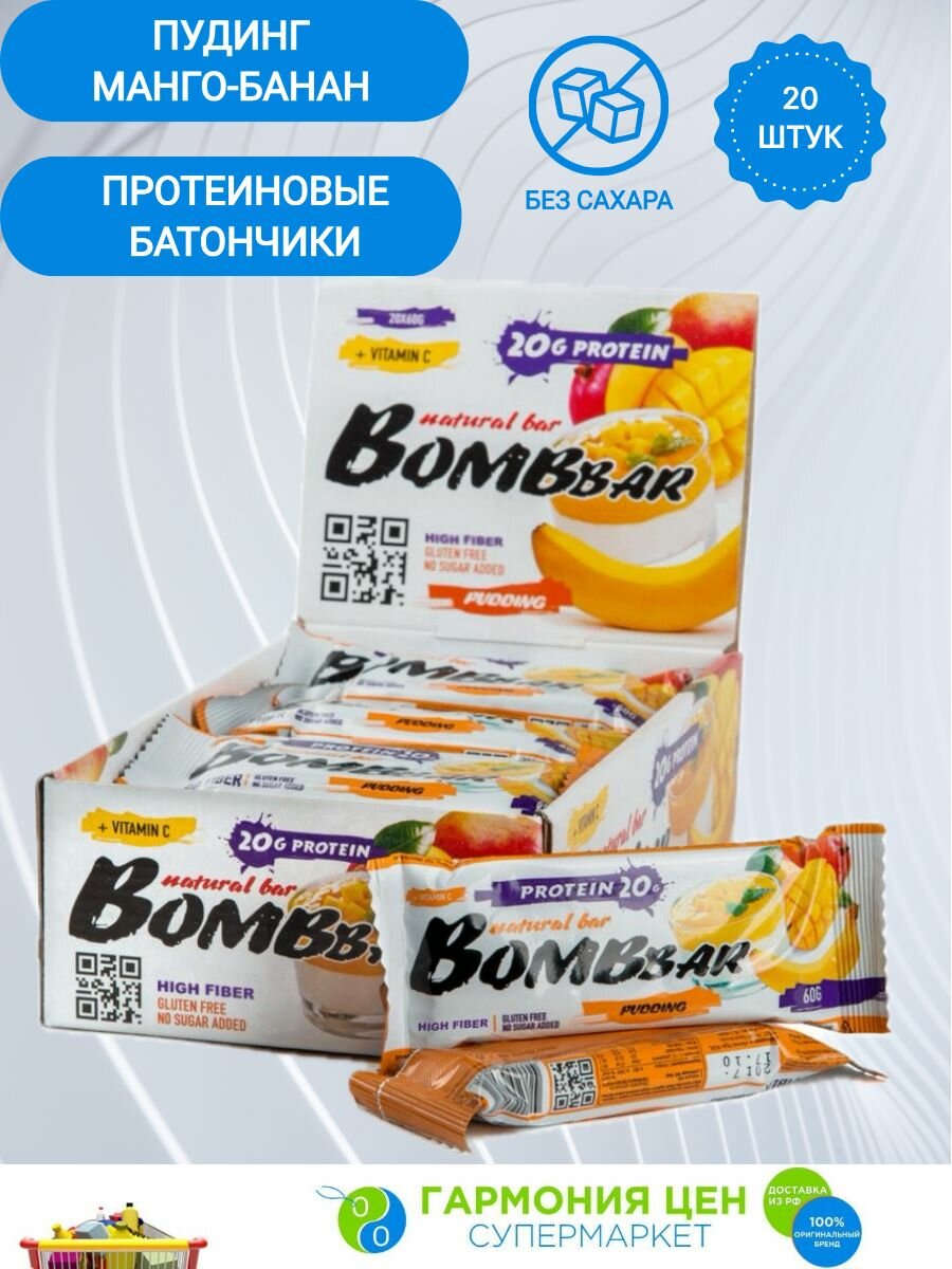 Протеиновый батончик Bombbar без сахара, Пудинг банан-манго, 60г х 12 шт.