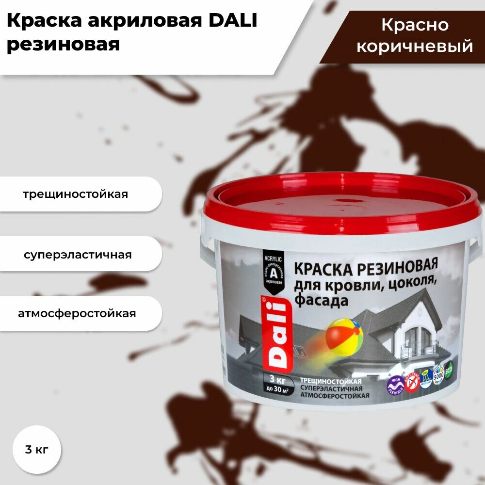 Краска акриловая DALI резиновая для кровли, цоколя, фасада влагостойкая моющаяся глубокоматовая красно-коричневый 3 кг