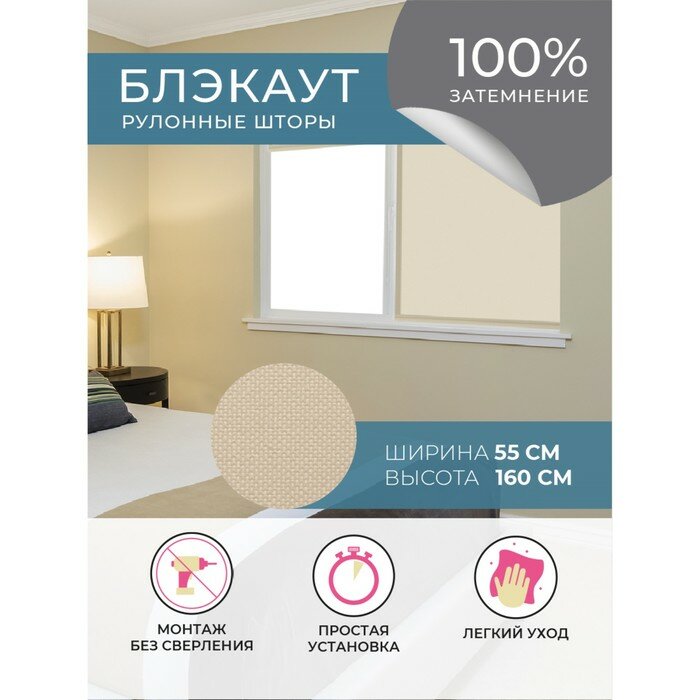 СохранитьРулонные шторы Блэкаут Плайн Кремово-бежевый DECOFEST 55 см на 160 см, жалюзи на окна интересное: