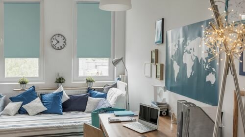 СохранитьРулонные шторы Блэкаут Плайн Свежая мята DECOFEST 55 см на 160 см, жалюзи на окна интересное: