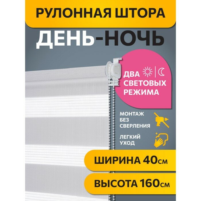 Рулонные шторы день ночь Бейс Белый DECOFEST 40 см х 160 см, жалюзи на окно