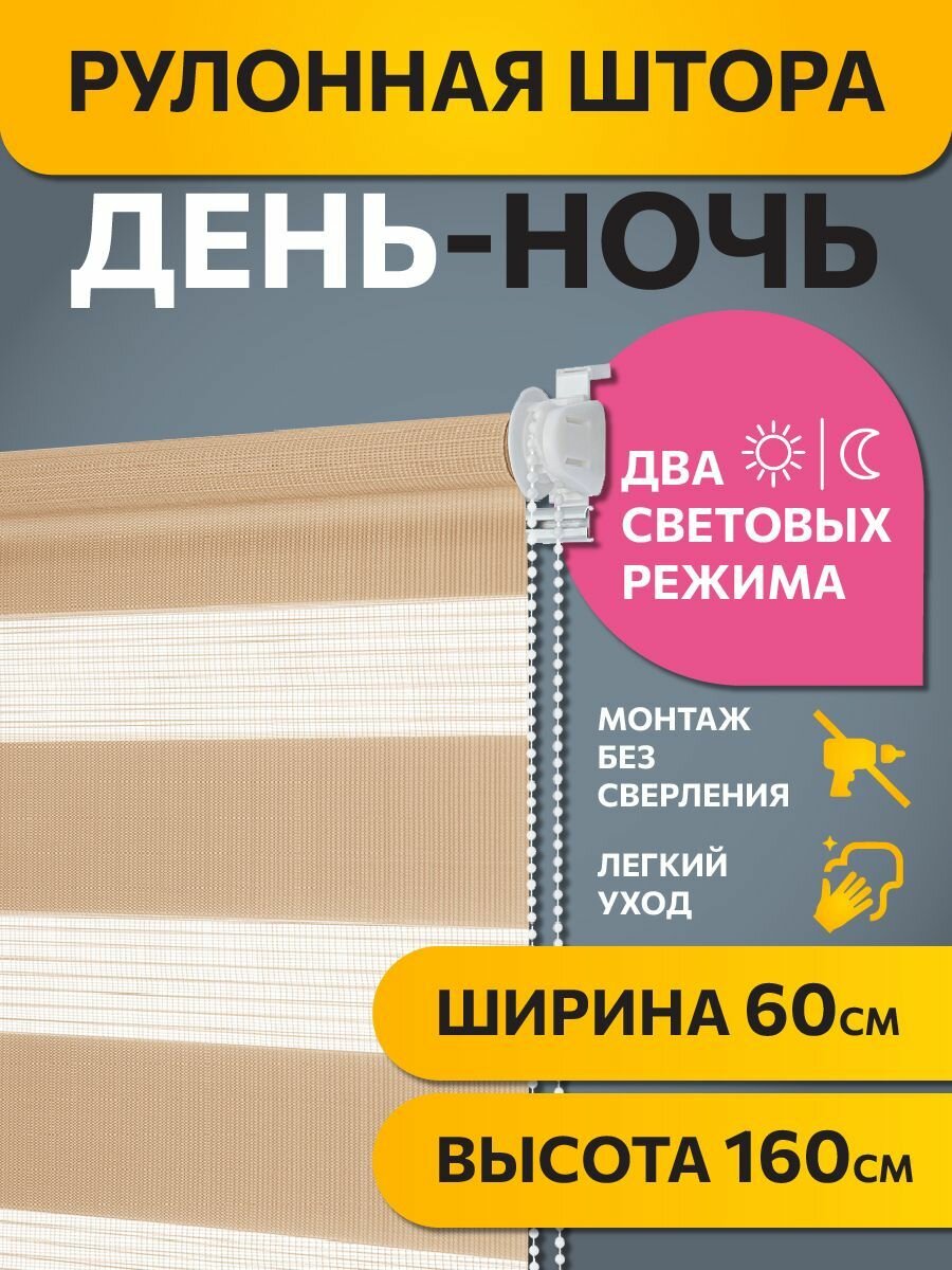 Рулонные шторы день ночь Жаккард Бежевый DECOFEST 60 см на 160 см, жалюзи на окна