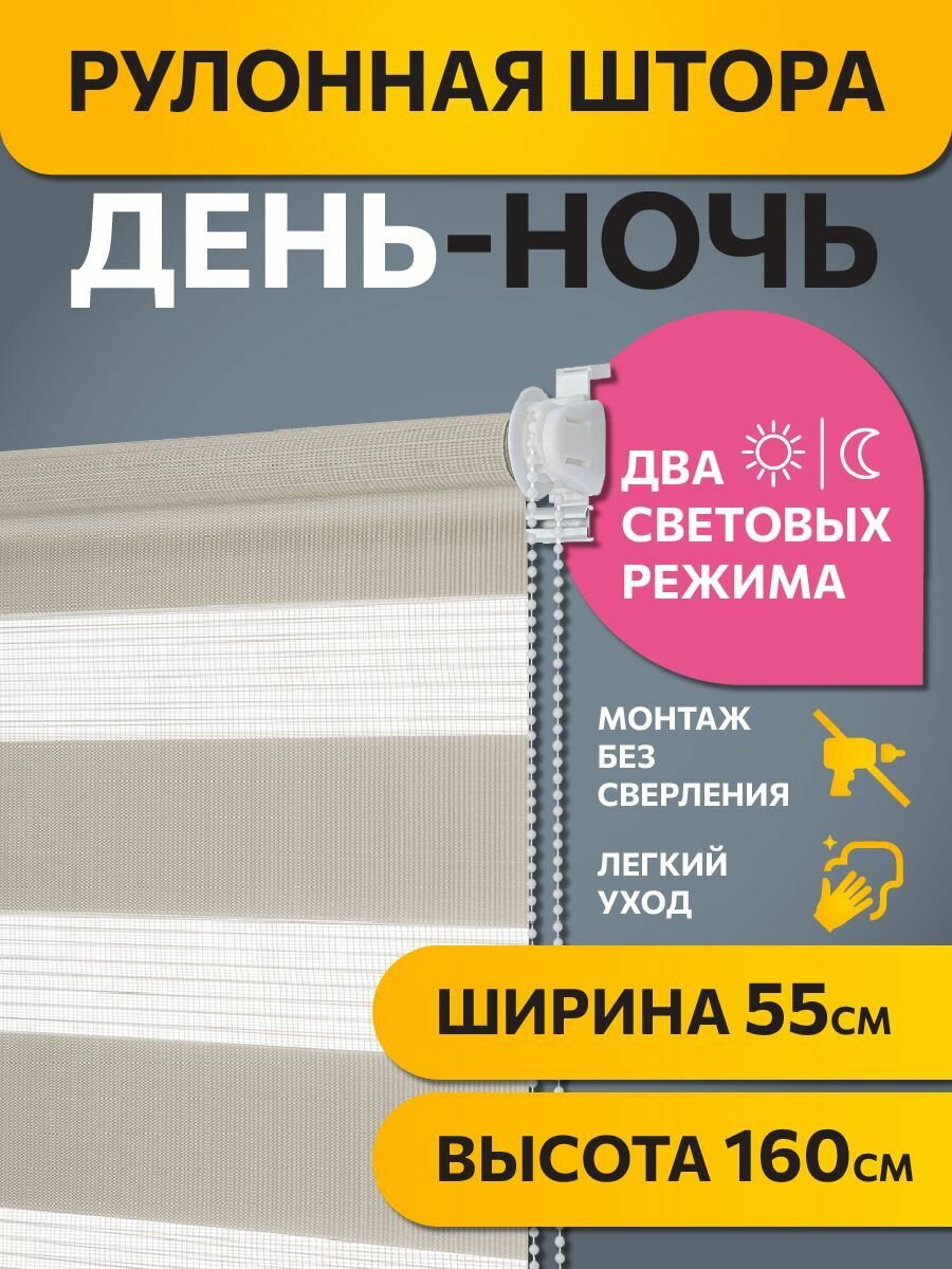Рулонные шторы день ночь Бейс Эко бежевый DECOFEST 50 см х 160 см, жалюзи на окно