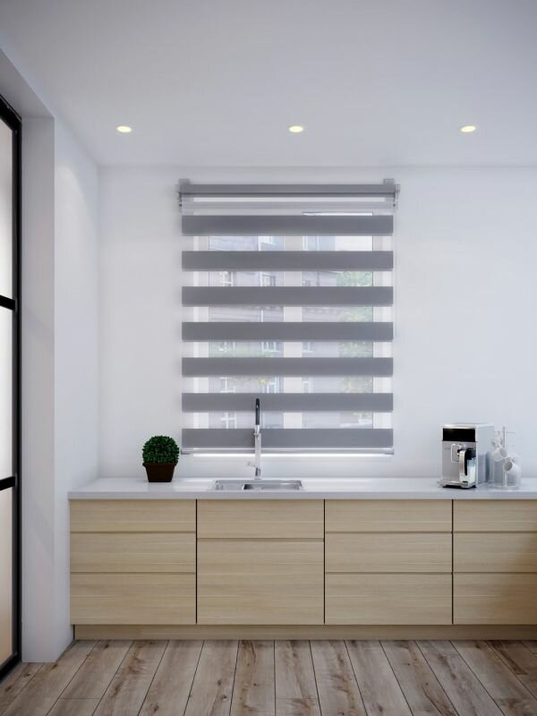 Рулонные шторы день ночь Бейс Серый DECOFEST 40 см х 160 см, жалюзи на окно