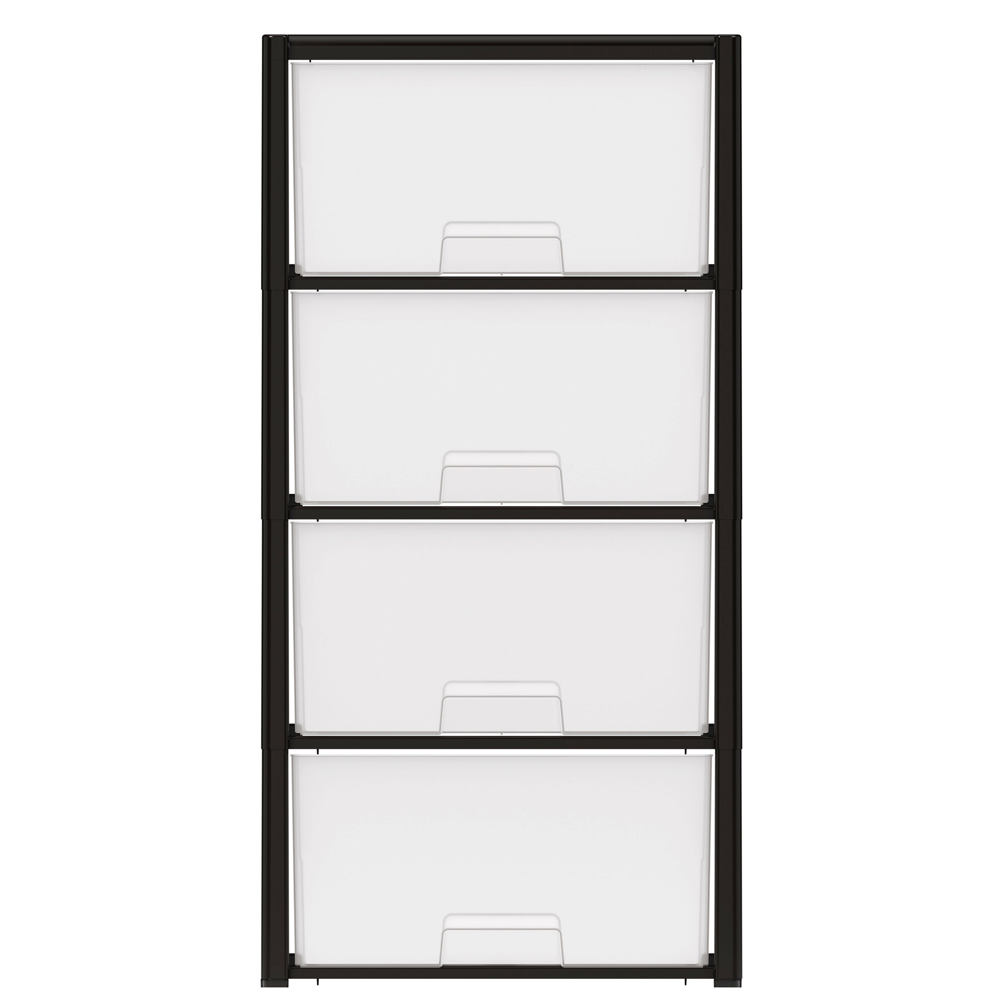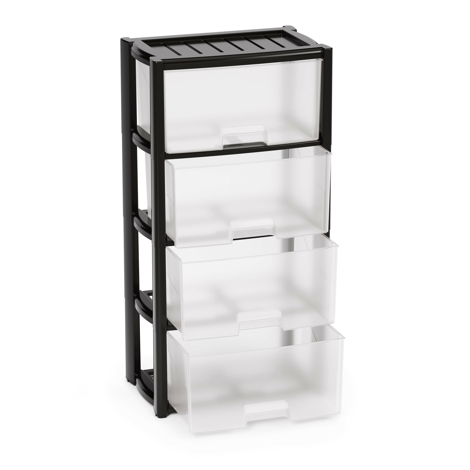 Комод четырехсекционный черный с матовыми ящиками из пластика