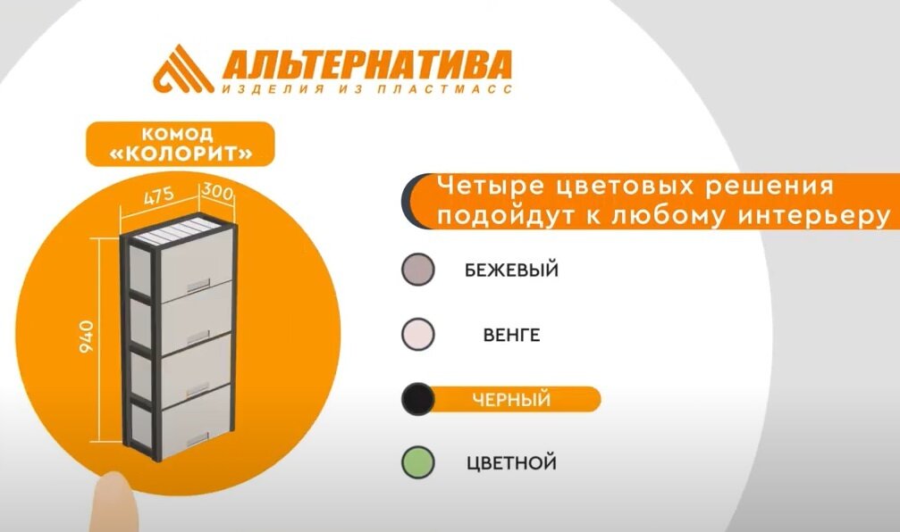 Комод из пластика альтернатива М7925 "Колорит" 4-х секцион. (черный)