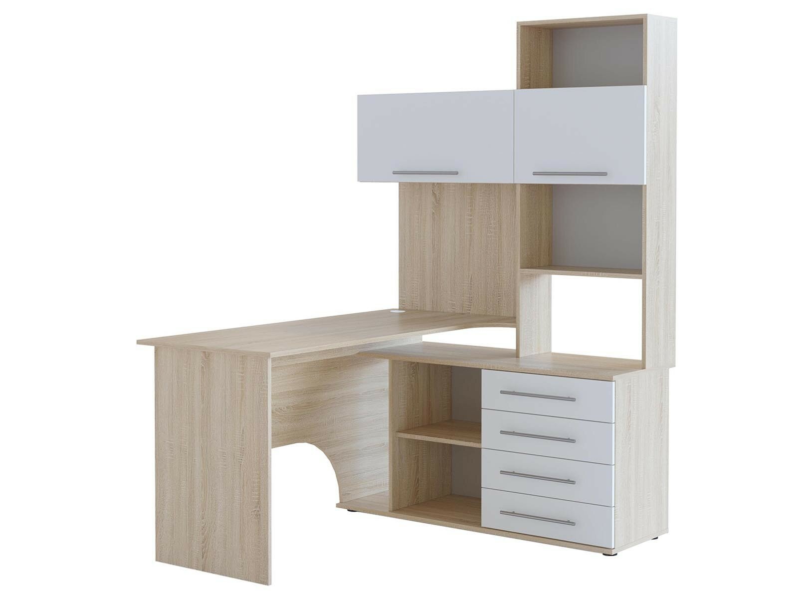 Стол компьютерный КСТ-14Л левый, цвет дуб сонома/белый, ШхГхВ 140х124х183 см., выдвижные ящики слева, стол с тумбой и надстройкой