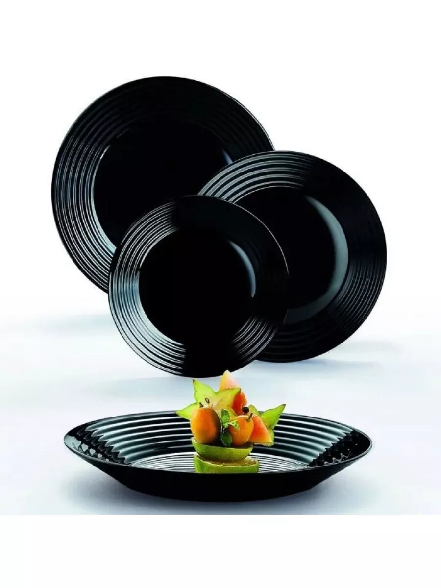 Сервиз столовый Luminarc N5162 обеденный набор на 6 персон, 18 предметов, без декоративных элементов, ударопрочное стекло, черный