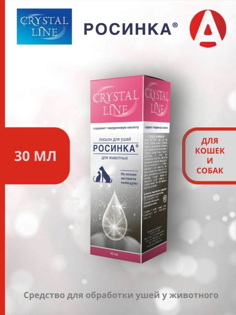 Лосьон для ушей Росинка Crystal Line для кошек и собак, 30 мл