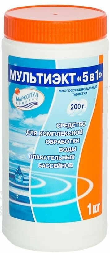 Мультиэкт 5 в 1 (1кг): Мультифункциональные таблетки для бассейна по 200г. Маркопул Кемиклс