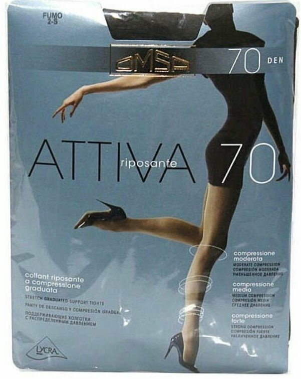 Колготки Omsa Attiva, 70 den, размер 2-S, fumo