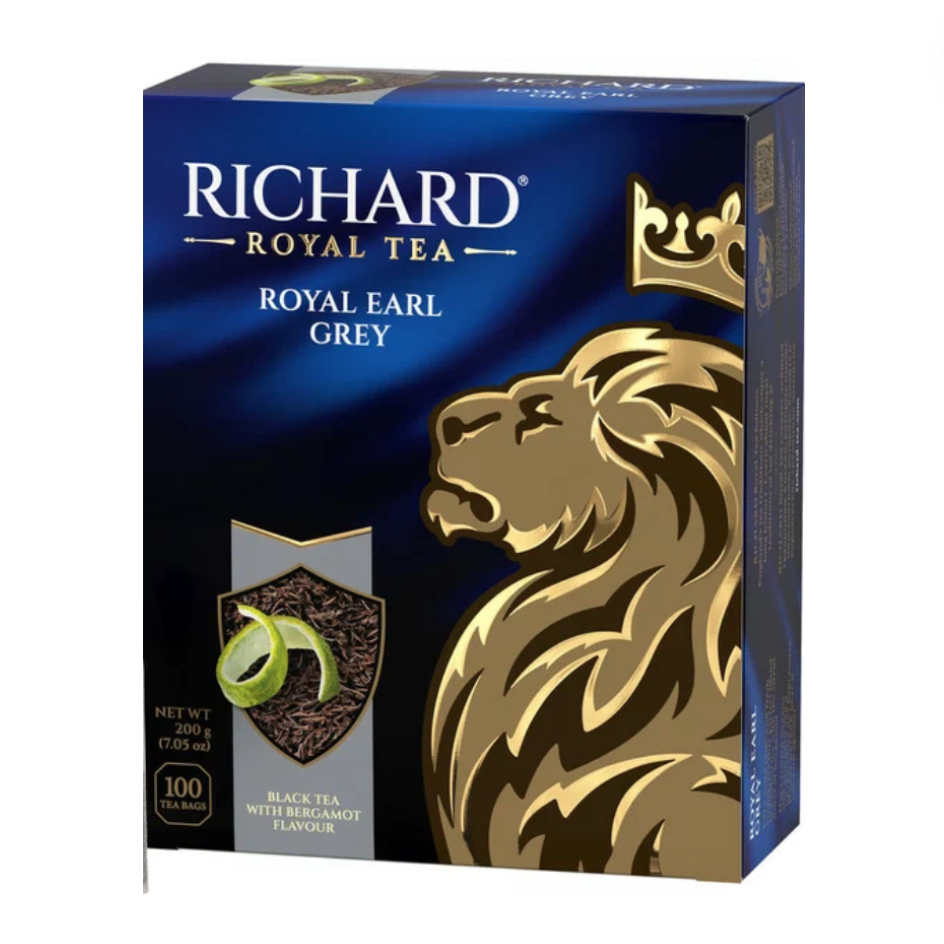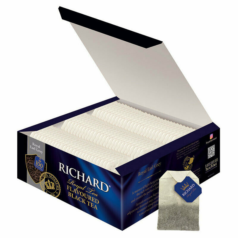 Чай RICHARD "Royal Earl Grey" черный цейлонский с бергамотом, 100 пакетиков по 2 г, ш/к 51082