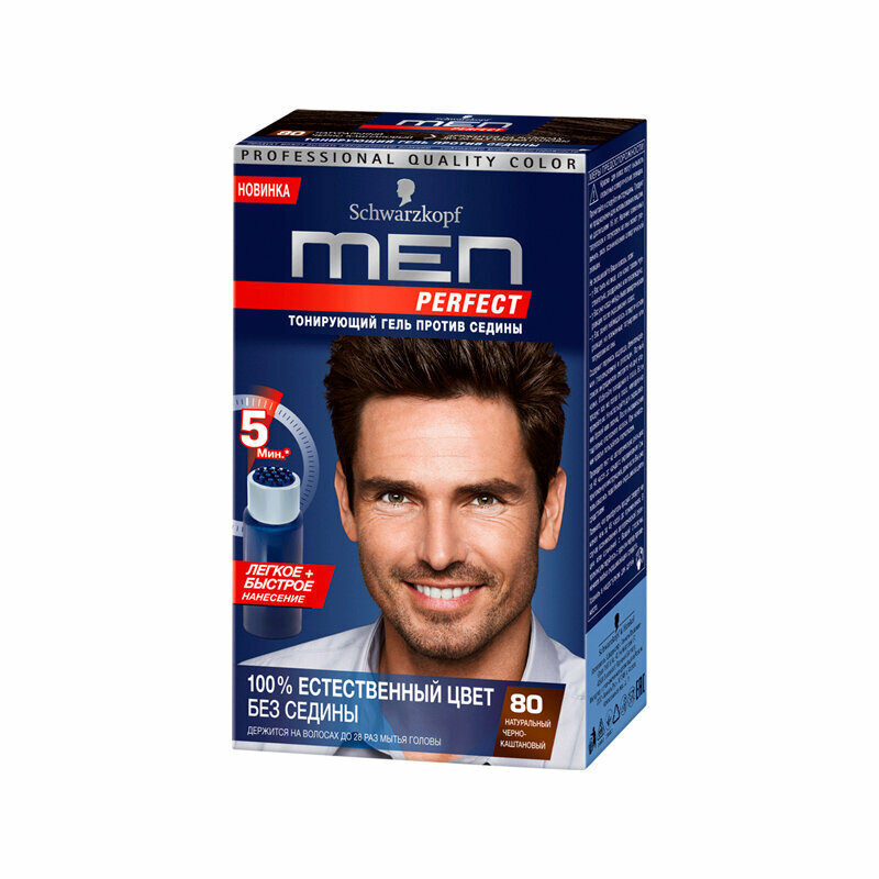 Men Perfect Гель тонирующий для волос против седины, 80 натуральный черно-каштановый, 80 мл, 1 шт