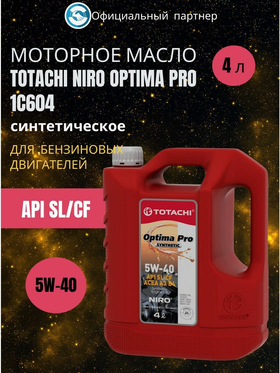 Масло моторное Totachi Niro Optima PRO 5w40, синтетическое, API SL/CF, ACEA A3/B4, универсальное, 4л, арт. 1C604