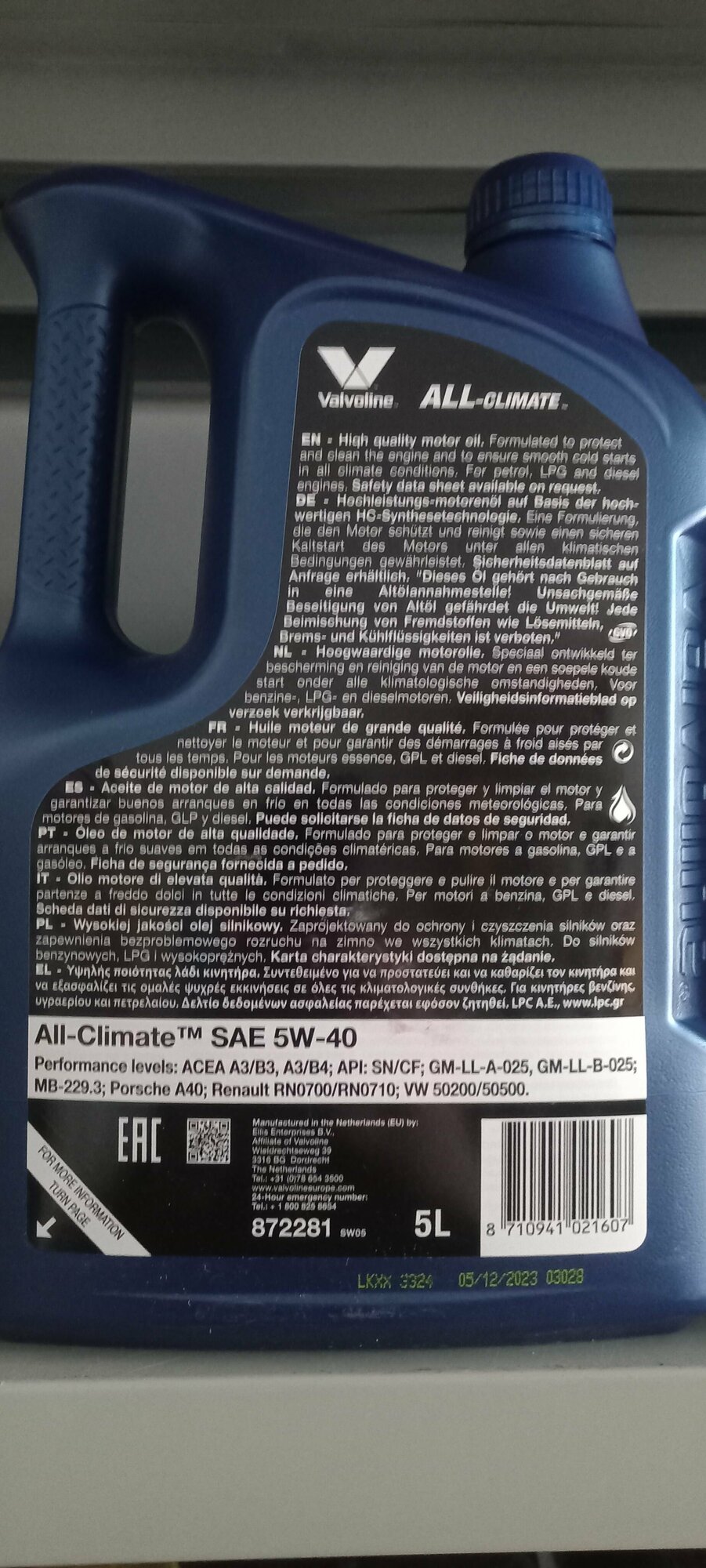 Valvoline 5Л 5W40 Valvoline All Climate 5W40 5Л
