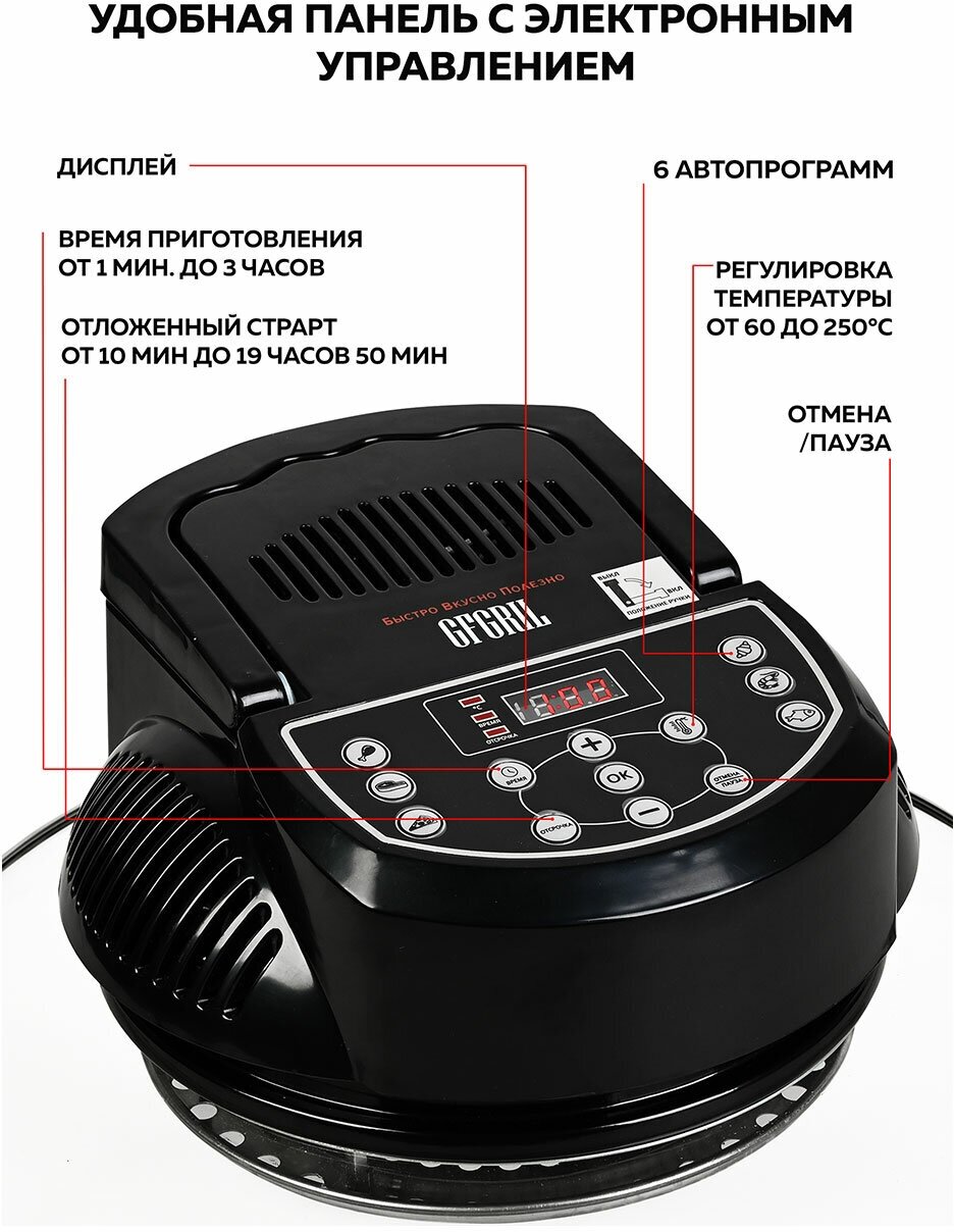 Аэрогриль GFGRIL GFA-GL17D, 12л + 5л, эл.управление, 6 автопрограмм, гриль