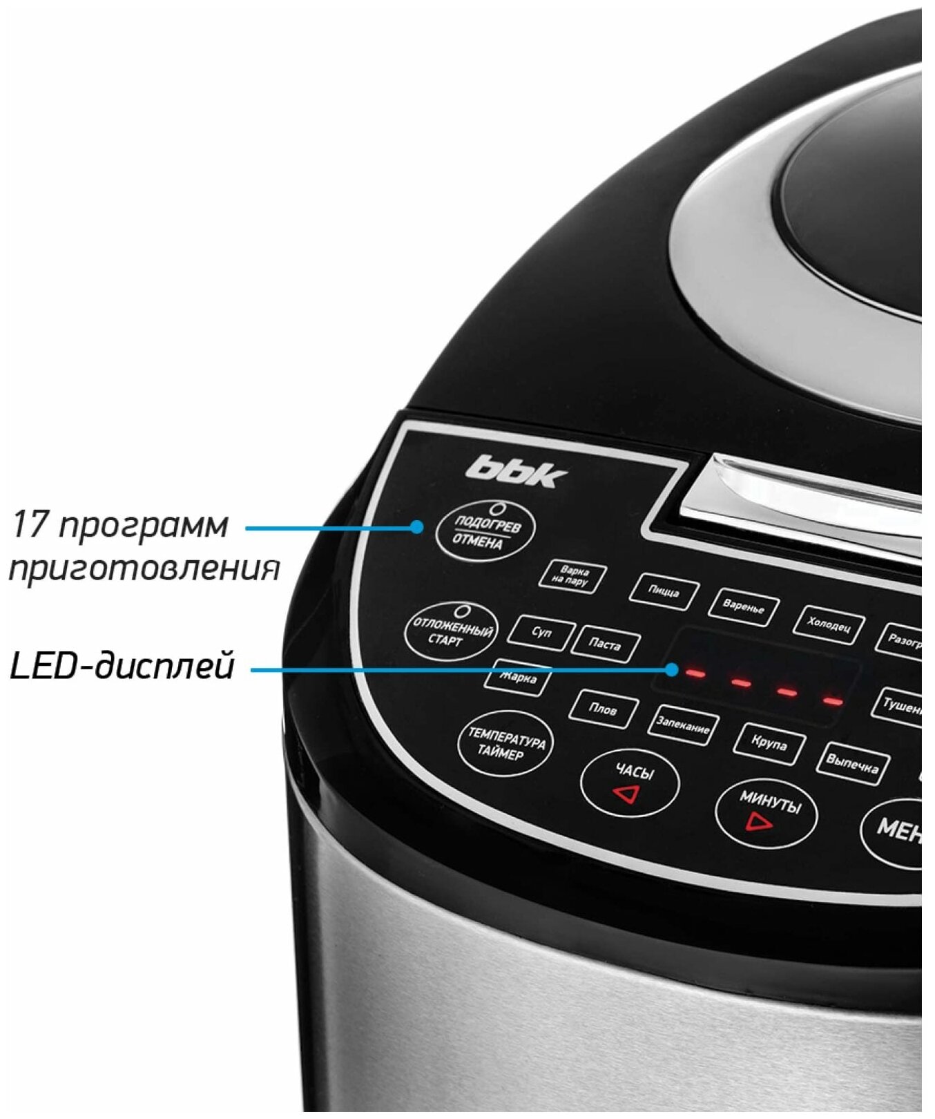 Мультиварка BBK BMC-052 черный,нерж.ст,об.5л,900Вт,17реж,функция "Свой рецепт" ВВК 4897055286970