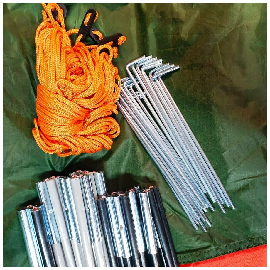 Купить палатка шатер 4-местная, с тамбуром, (2 слоя) дуги стекловолокно, вес 8,5кг ART1005-4 (зеленая)