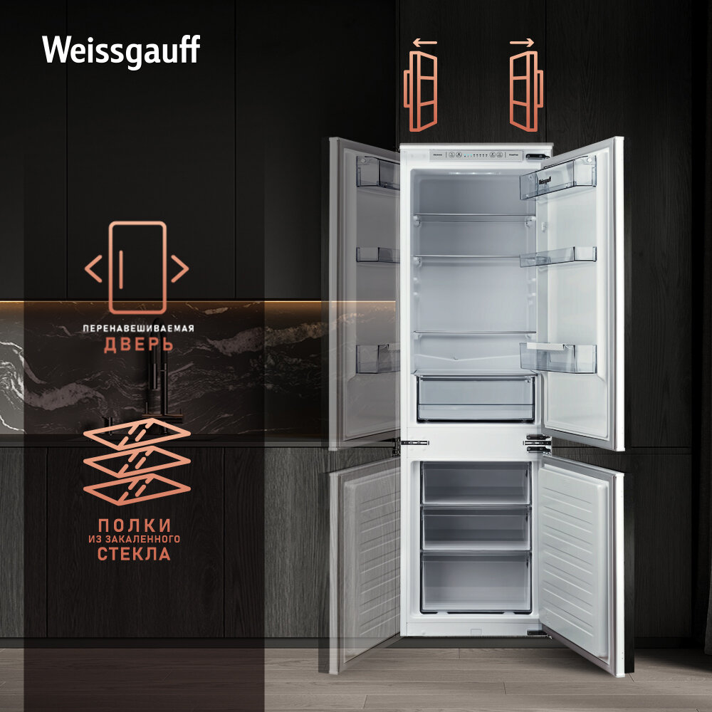Встраиваемый двухкамерный холодильник Weissgauff WRKI 178 H NoFrost интересное: