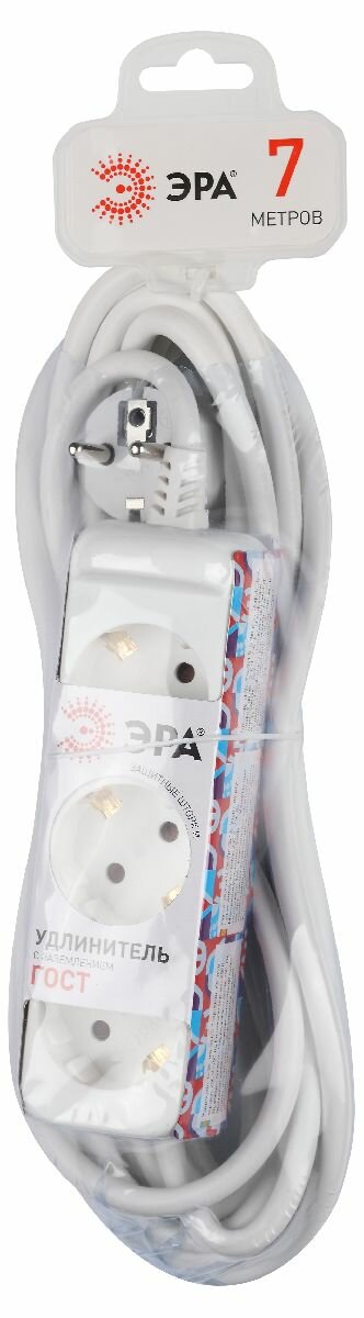 ЭРА Удлинитель 3-мест 7м ПВС 3*1 белый ЭРА