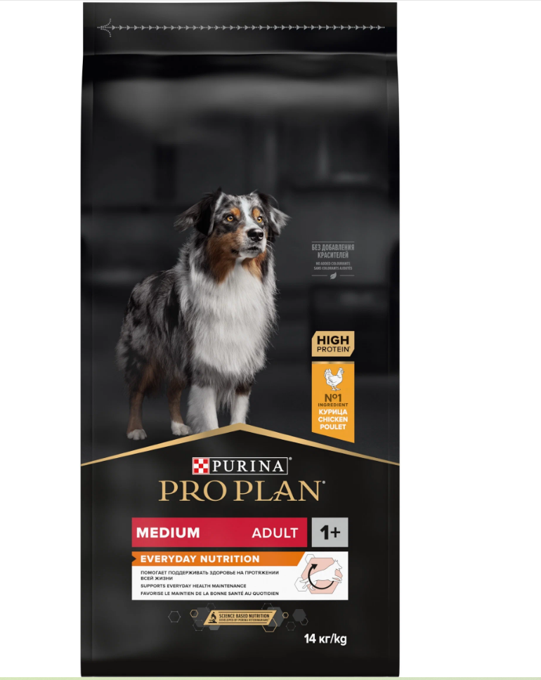 Сухой корм PRO PLAN® для взрослых собак средних пород, с высоким содержанием курицы, EVERYDAY NUTRITION,14 кг