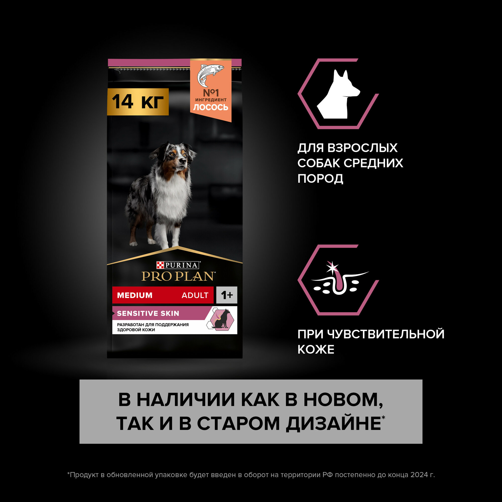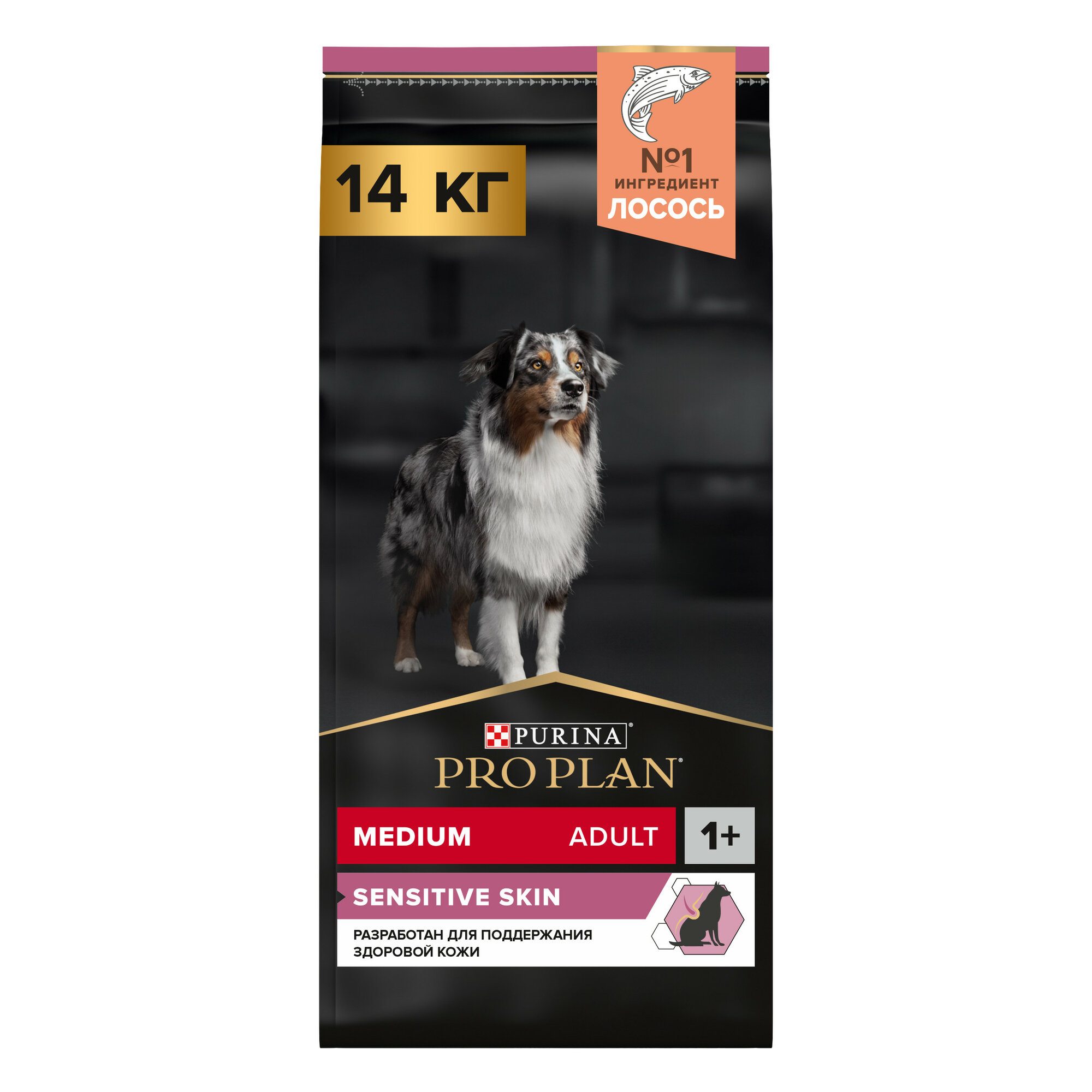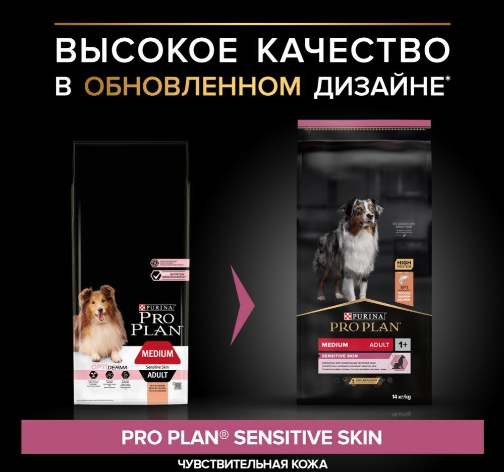 Сухой корм Pro Plan для собак средних пород с чувствительной кожей, с высоким содержанием лосося, Пакет, 14 кг