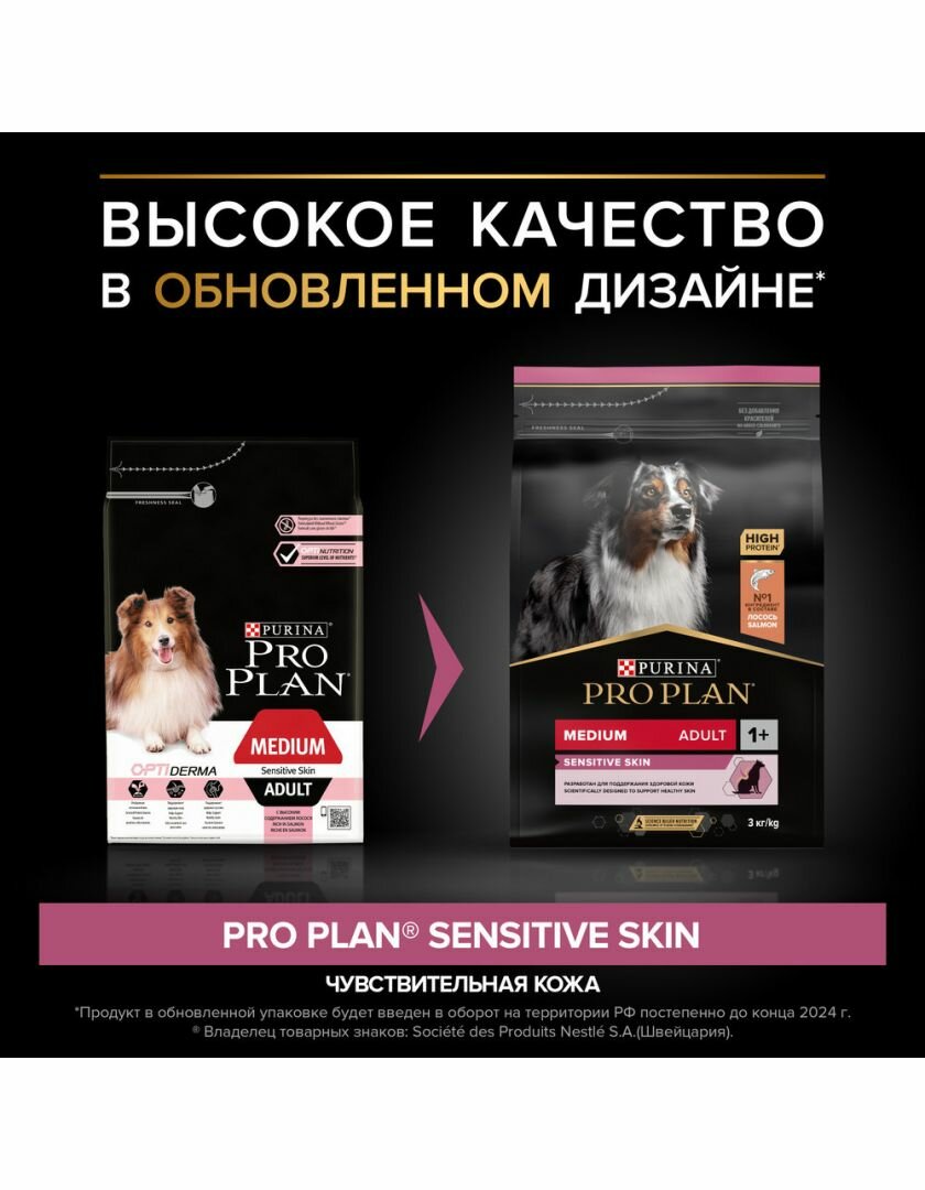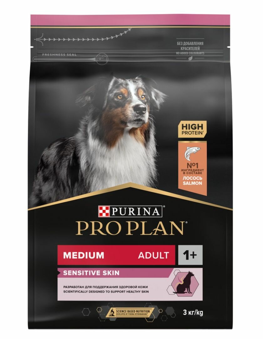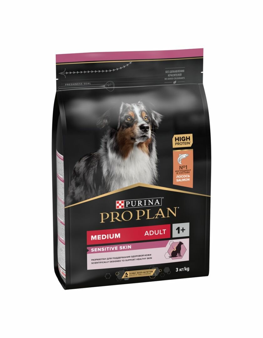 PRO PLAN ADULT DOG MEDIUM SENSITIVE SKIN для взрослых собак средних пород с чувствительной кожей с лососем и рисом (3 кг)