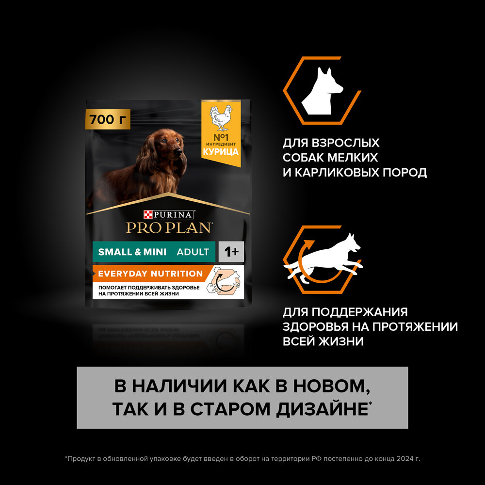 Сухой корм PRO PLAN® для взрослых собак мелких и карликовых пород, с высоким содержанием курицы, EVERYDAY NUTRITION,3 кг