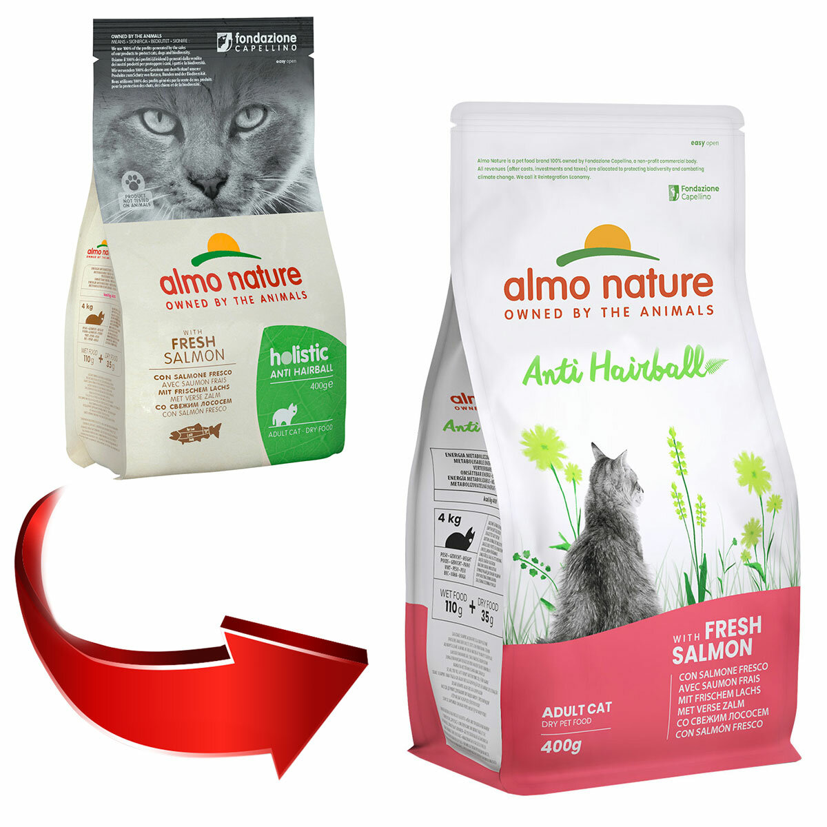 ALMO NATURE HOLISTIC Сухой корм для взрослых кошек со свежим лососем для выведения шерсти из желудка, Anti Hairball, Fresh Salmon, 0,4 кг