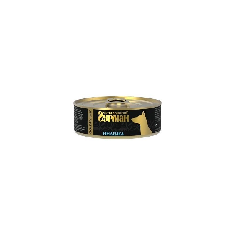 Влажный корм для собак Четвероногий Гурман Golden line Индейка натуральная упаковка 6 шт х 340 г