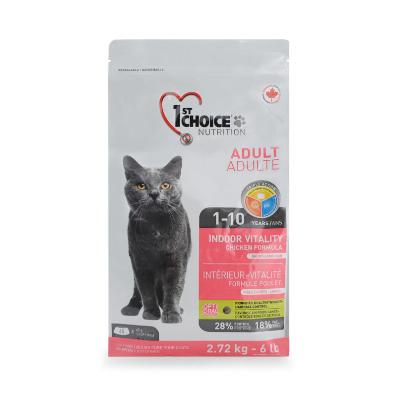 Корм сухой 1ST CHOICE VITALITY для живущих в помещении взрослых кошек, с курицей, 2,72 кг