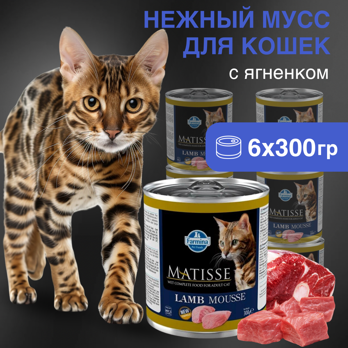 Влажный корм Farmina Matisse для взрослых, пожилых кошек и котов всех пород ,Фармина Матисс мусс со вкусом ягненка, 6шт по 300г