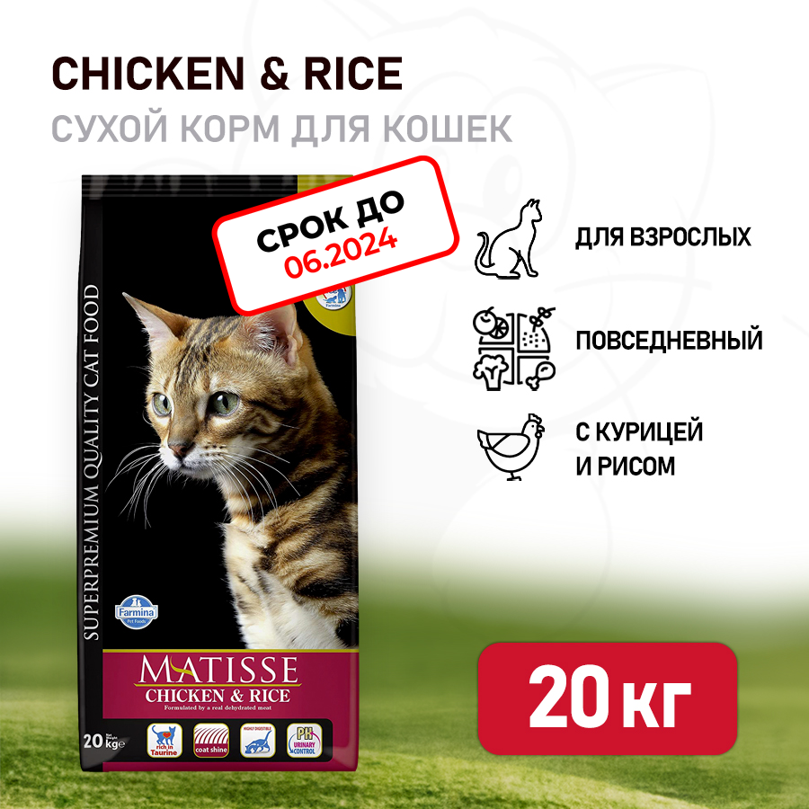 Срок до 06.2024 Farmina Matisse Chicken & Rice сухой корм для взрослых кошек с курицей и рисом - 20 кг