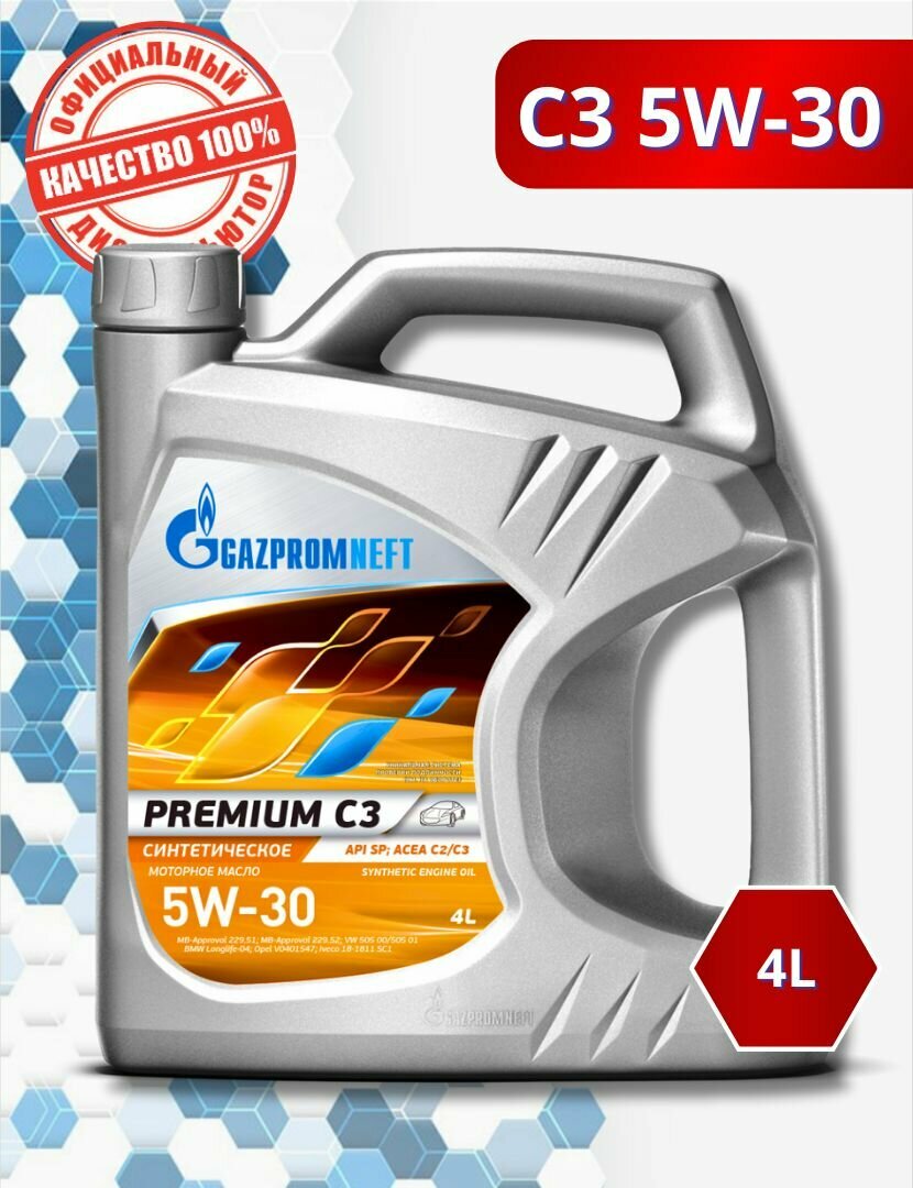 Моторное масло Gazpromneft Premium C3 5W-30 синтетическое, 4 л