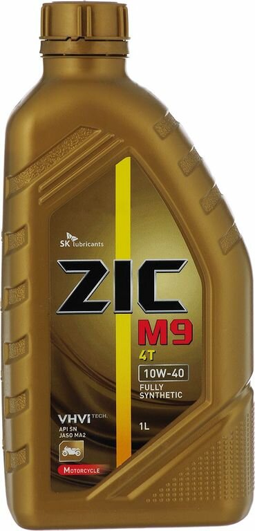 Масло для мототехники ZIC M9 4T 10w40, синтетическое, API SN, JASO MA2, 4-тактное, 1л, арт. 132026