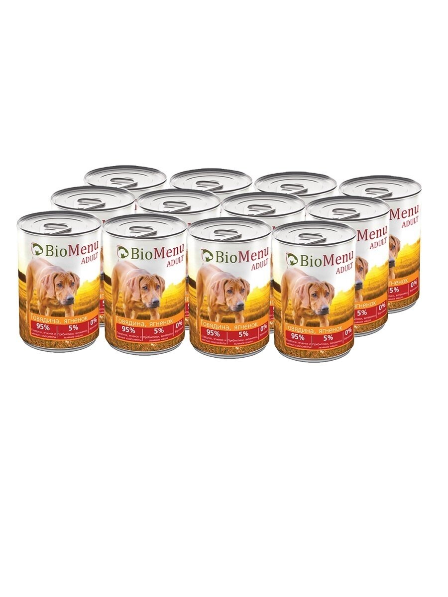 BioMenu ADULT Консервы для собак Говядина/Ягненок 95%-мясо 410г х 12 шт