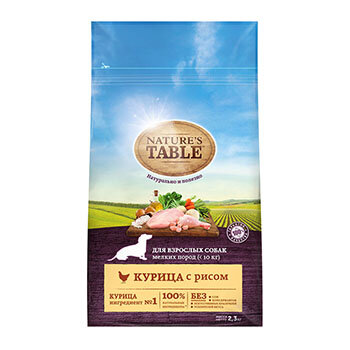 Корм для собак NATURE'S TABLE для мелких пород, курица с рисом сух. 2,3кг