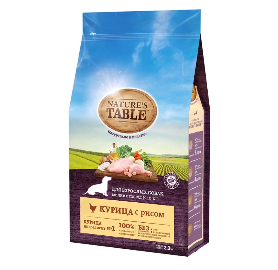 Natures Table Сухой корм Nature’s Table для собак мелких пород, Курица с рисом, 2,3кг 10225517, 2,3 кг