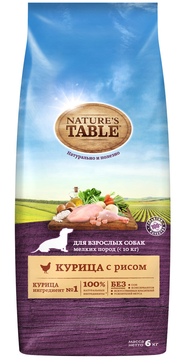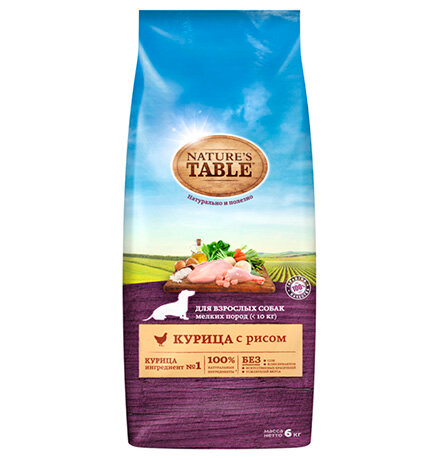 Nature`s Table корм для взрослых собак малых пород, курица и рис 6 кг
