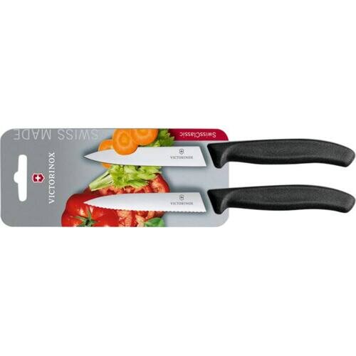 Набор Victorinox кухонный, 2 предмета, лезвие прямое и волнистое, черный