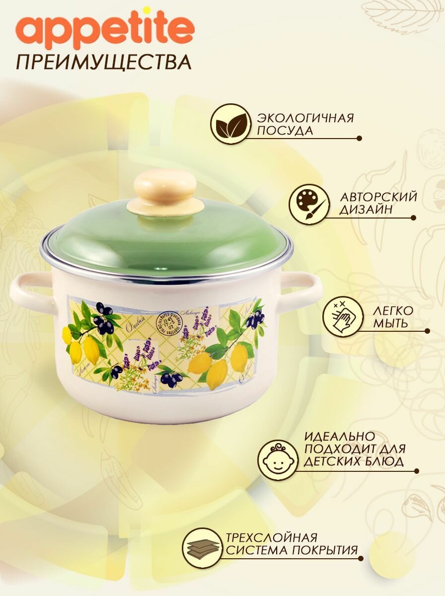 Кастрюля эмалированная с крышкой Citrus 3,0л ТМ Appetite