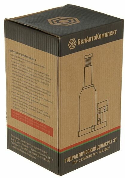 БелАК Домкрат бутылочный 3 т, с предохранительным клапаном, белак БАК00027 (1 шт.)