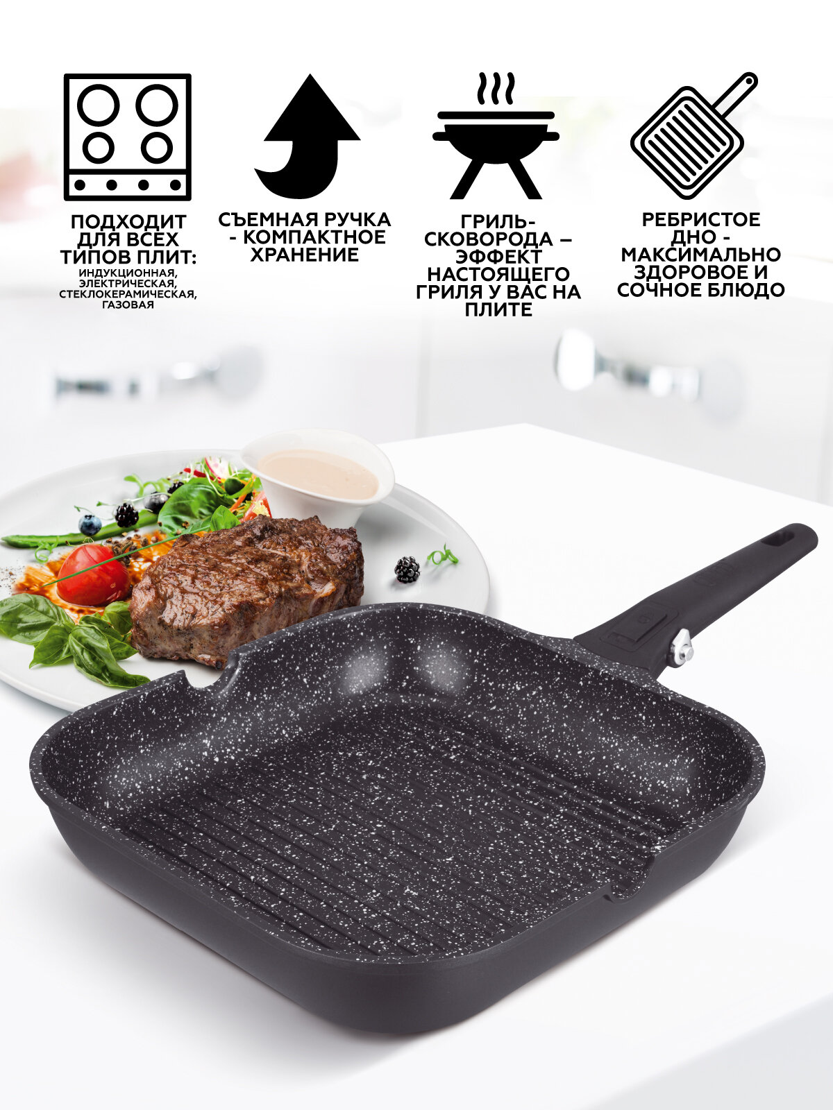 | Особенности | съемная ручка / ненагревающаяся ручка |